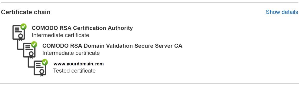 The end result of all this is a complete certificate chain, backed by either a root certificate we trust or, in the case of an untrusted root, a root certificate you're supplying to us. Make sure to verify your setup again after adding the intermediate, once done, you're good to go!