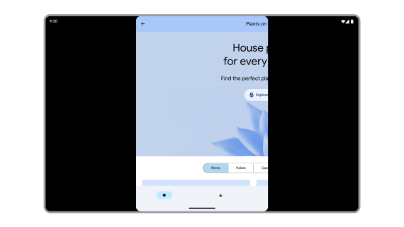 Figure 1. App restricted to portrait orientation is letterboxed on landscape tablet and foldable.