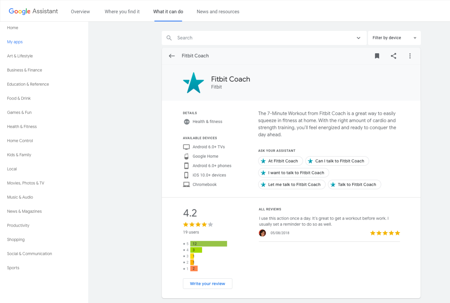 The mobile Assistant directory lets users browse Actions via the Google app for Android and the Google Assistant app for iOS.