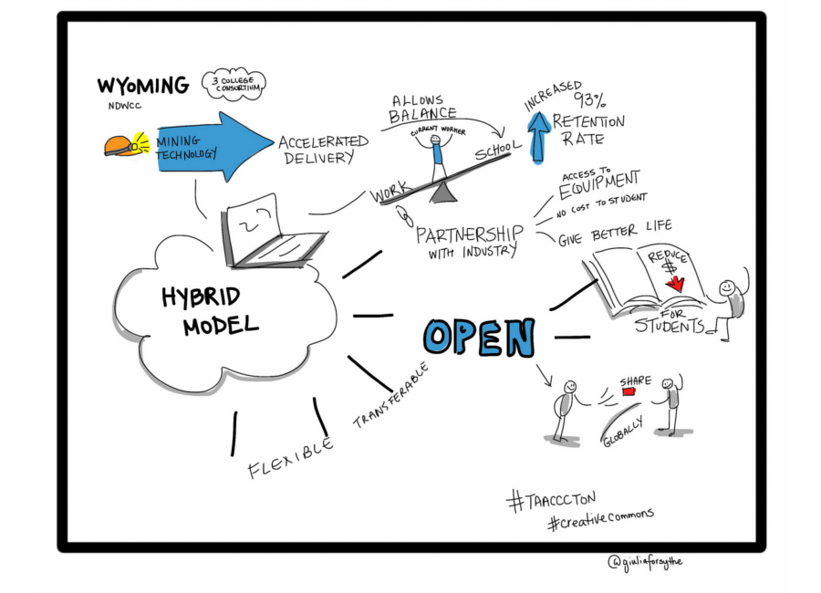 These projects were chosen to be recognized as exemplars by participants in the OPEN Showcase Fair at the TAACCCT-ON! conference, coordinated by OPEN, the Trac-7 Consortium, and the U.S. Department of Labor (October 2014). Each profile below includes a graphical portrait, a written highlight piece, and video footage with a standout project team member at TAACCCT-ON!