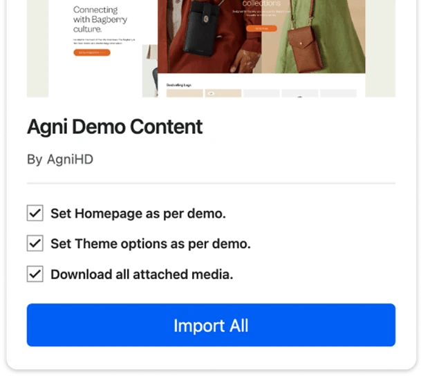 Worrying about building from scratch? Don’t be. Import demo content to get started with one click.